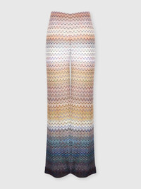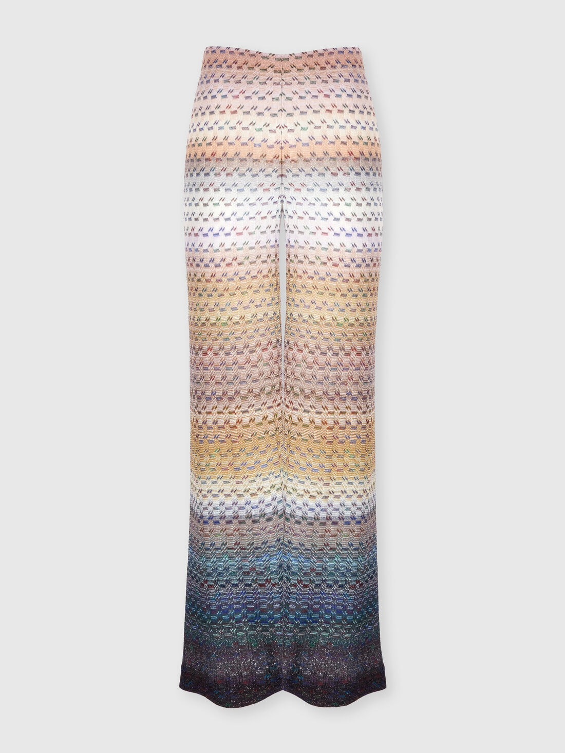 Wide and flowing, these women’s palazzo trousers are made in a refined offset raschel knit that gives the fabric a sophisticated visual rhythm. The viscose-blend yarn, enriched with lame threads, adds subtle shine that gracefully follows movement. MORE DETAILS - Women's palazzo pants - Offset raschel knit - Viscose and lame filament blend Composition: EXTERNAL:88%Rayon, 12%Metal Fiber; LINING : 77%Polyamide, 23%Elastane Care instructions: Dry cleaning in tetrachloroethene - mild process ; Ironing maximum temperature 110°C - without steam ; Dry flat ; Do not tumble dry ; Do not wash ; Do not bleach Made in: Italy Product ID DS25WI1ABR0144S72O4