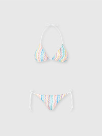 A refined classic bikini in printed Raschel fabric, with adjustable tie details on the briefs and top for a personalized fit. Missoni’s famous zigzag pattern enhances the charm of the design, making it ideal for a chic and lively summer look. MORE DETAILS - Women's classic bikini - Iconic zig zag pattern - Customizable fit - Raschel printed workmanship Composition: EXTERNAL:100%Polyester; LINING : 80%Polyamide, 20%Elastane Care instructions: Hand wash ; Do not tumble dry ; Do not dry clean ; Do not iron ; Do not bleach Made in: Italy Product ID MC22SP00BR0130SM9QJ