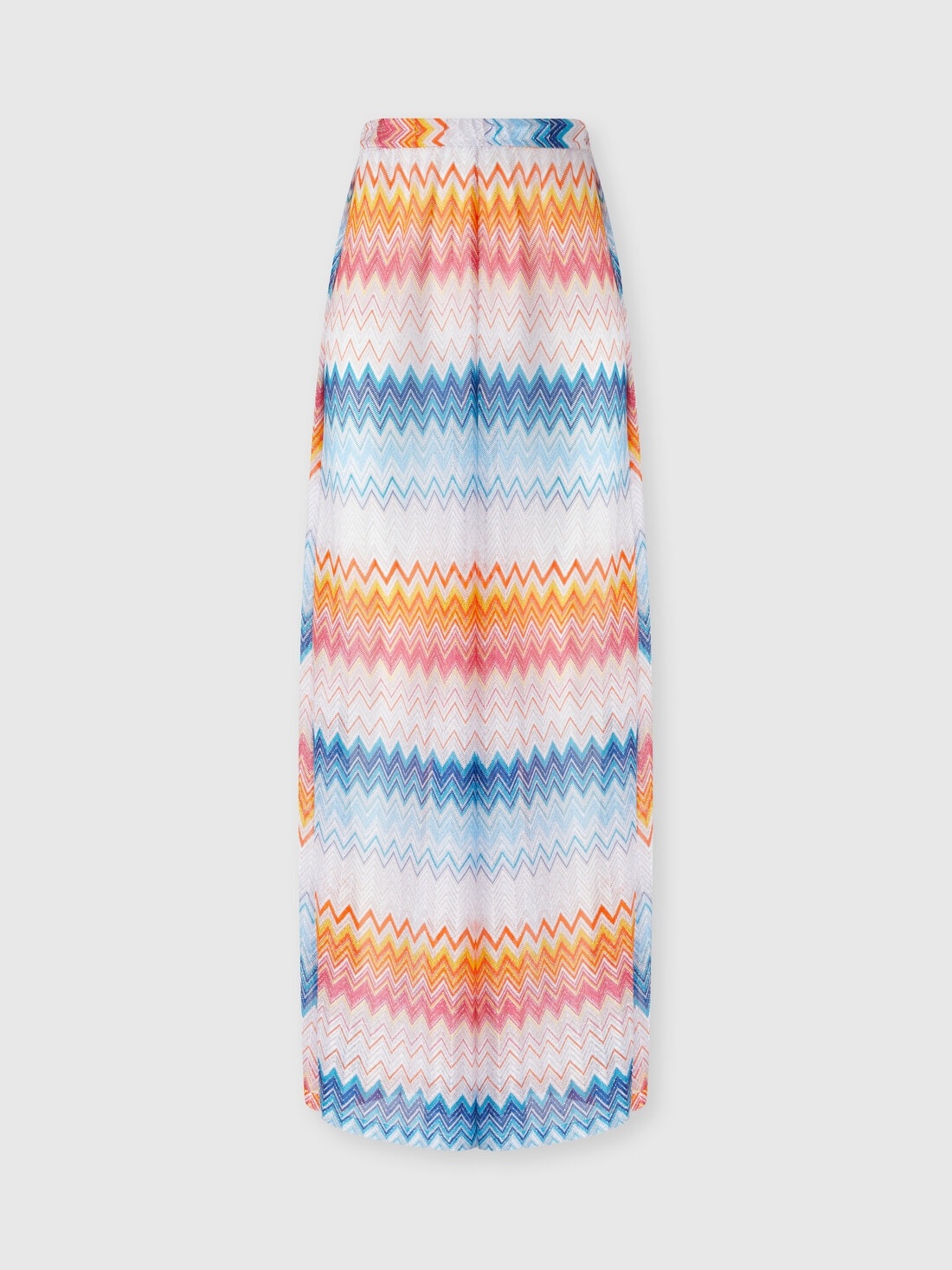 The classic viscose-blend palazzo trousers offer a dynamic elegance typical of Missoni. The loose silhouette is enhanced by a deep side slit, which gives movement and sensuality, while the reflections of the lame illuminate the iconic multicolor zig zag shaded with a sophisticated brilliance. A distinctive garment that combines comfort and sophistication. MORE DETAILS - Classic trousers - Palace model - Viscose and lame blend - Zig zag pattern Composition: EXTERNAL:90%Rayon, 6%Polyester, 4%Polyamide Care instructions: Ironing maximum temperature 110°C - without steam ; Dry cleaning in tetrachloroethene ; Do not tumble dry ; Do not wash ; Do not bleach Made in: Italy Product ID MC23SI00BR00ZYSM9MW