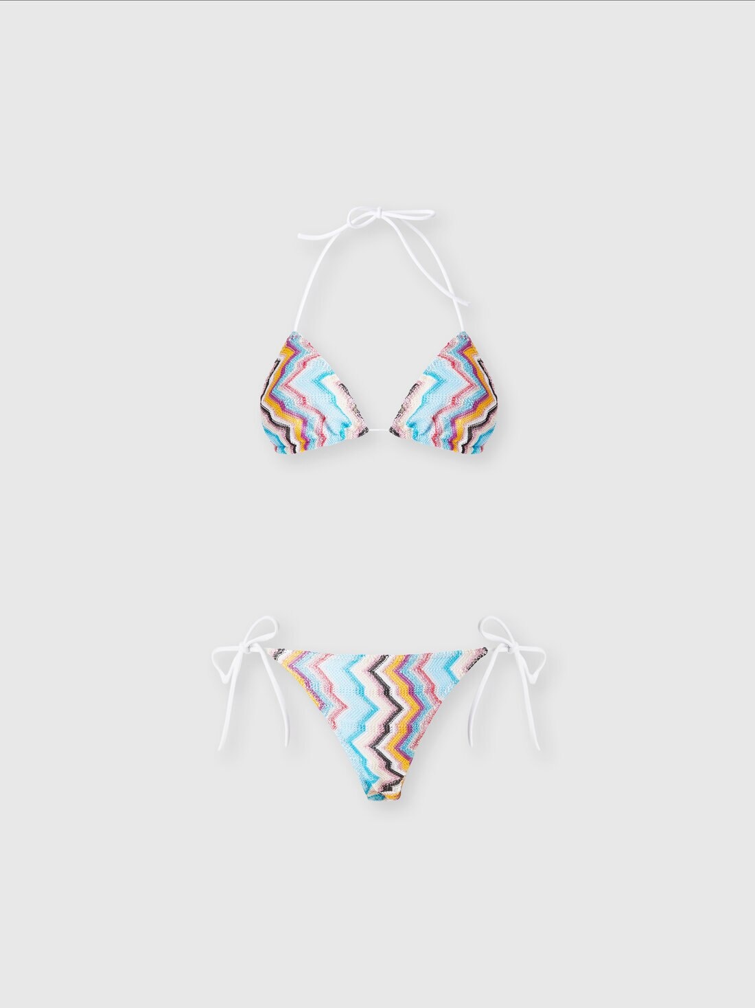 An elegant classic bikini made from viscose and lame, featuring adjustable ties on the briefs and top for a perfect fit. The iconic zigzag pattern by Missoni adds vibrant dynamism, making it perfect to embody the carefree spirit of summer days. MORE DETAILS - Women's classic bikini - Caperdoni workmanship - Iconic zig zag pattern - Customizable fit - Viscose and lame fabric Composition: EXTERNAL:89%Rayon, 11%Metal Fiber; LINING : 80%Polyamide, 20%Elastane Care instructions: Hand wash ; Do not tumble dry ; Do not dry clean ; Do not iron ; Do not bleach Made in: Italy Product ID MC22SP00BC005JS72LG