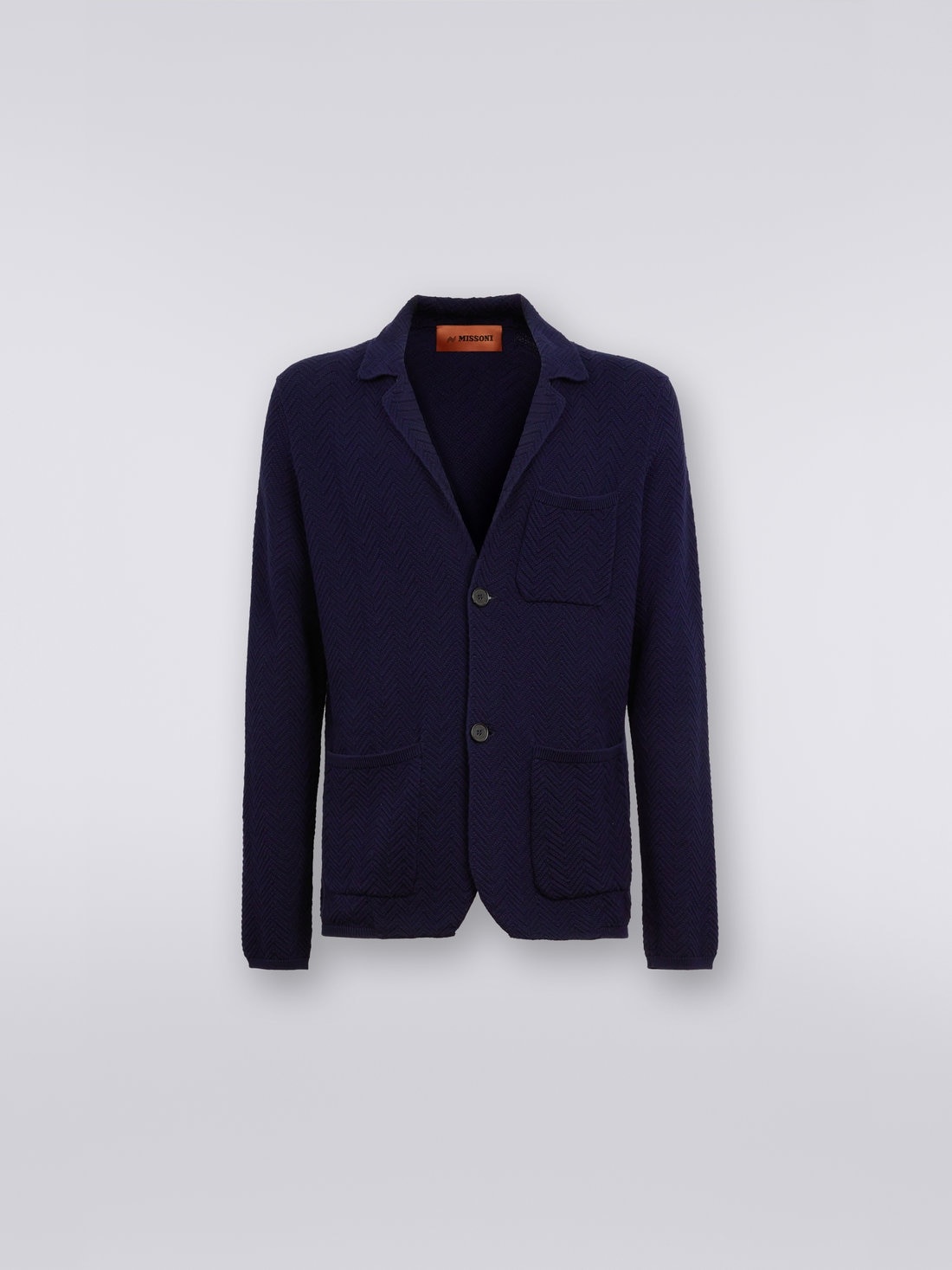 The zigzag pattern animating the surface makes this men’s jacket instantly recognisable. The deconstructed blazer, as easy to wear as a cardigan, is made of a cotton viscose blend knit and features patch pockets. MORE DETAILS - Men’s jacket in cotton and viscose knit - Zigzag weave - Double button placket - Low patch pockets - Breast pocket Composition: EXTERNAL:100%Cotton Care instructions: Dry clean in tetrachloroethylene; Iron with steam only; Do not treat with chlorine; Do not tumble dry Made in: Italy Product ID UC23SF00BK023LS729R