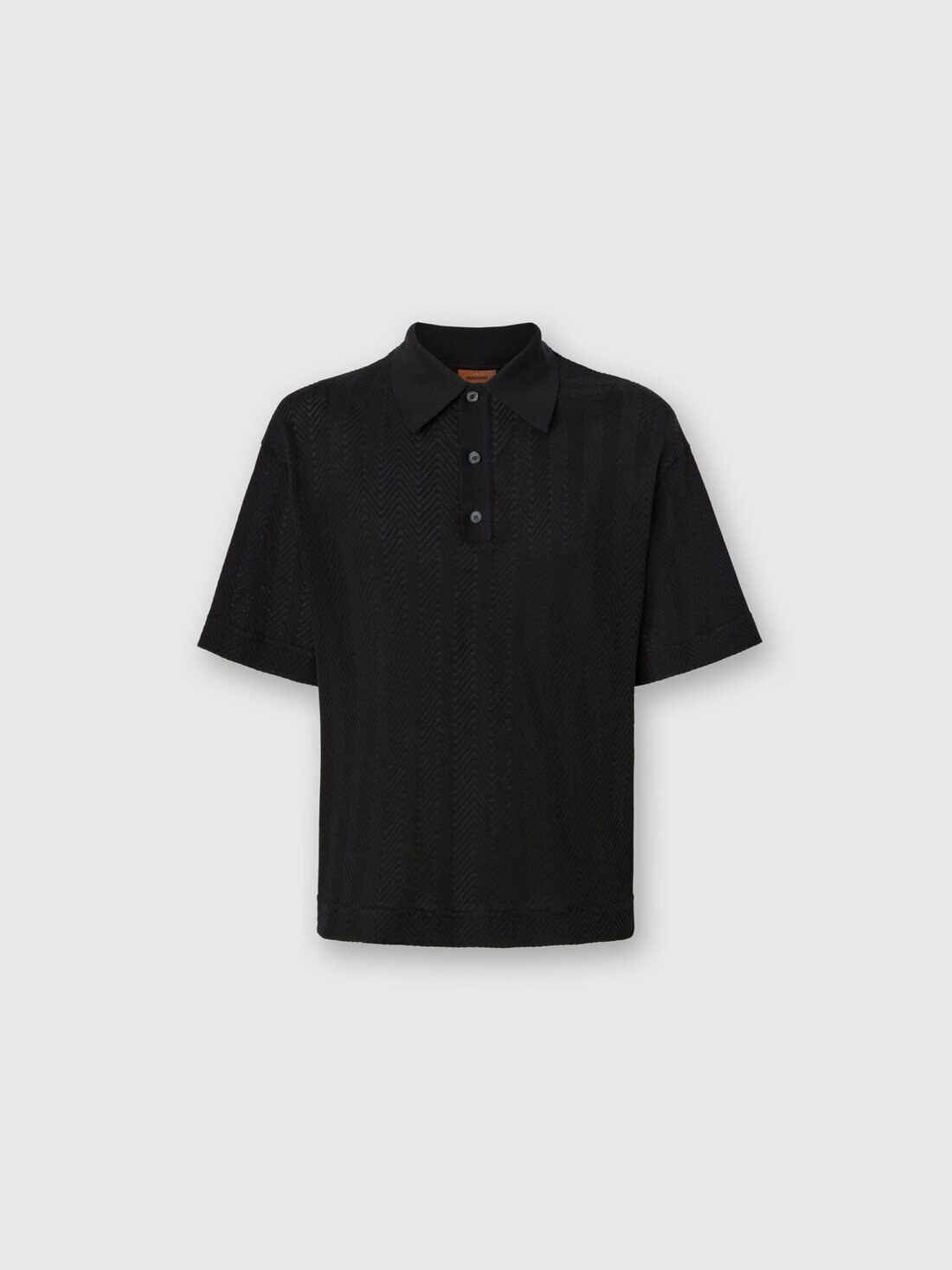 Cotton and viscose polo shirt with tone-on-tone zigzag