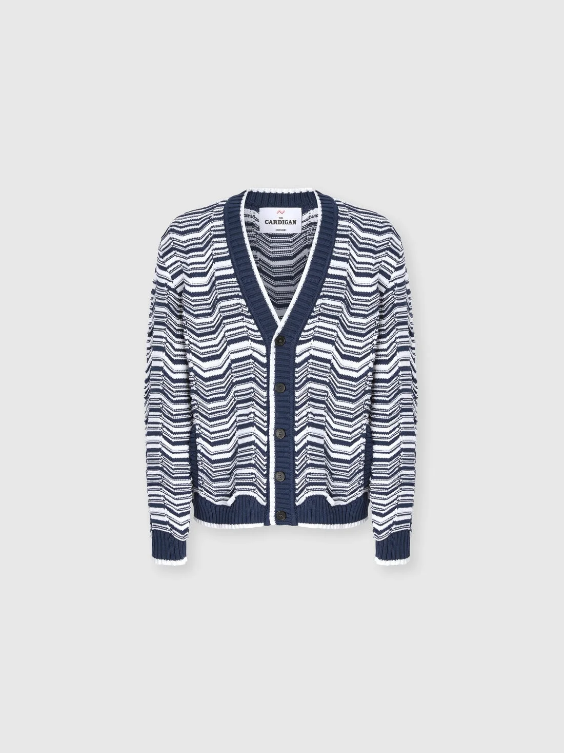 MORE DETAILS - Men’s cardigan with side pockets - Greek pattern - Cotton blend Composition: EXTERNAL:70%Cotton, 30%Polyamide Care instructions: Ironing maximum temperature 110°C - without steam ; Hand wash ; Dry cleaning in tetrachloroethene ; Dry flat ; Do not tumble dry ; Iron with a cloth between ; Use neutral detergent ; Do not bleach Made in: Italy Product ID US26SM0BBK01HSS72PN