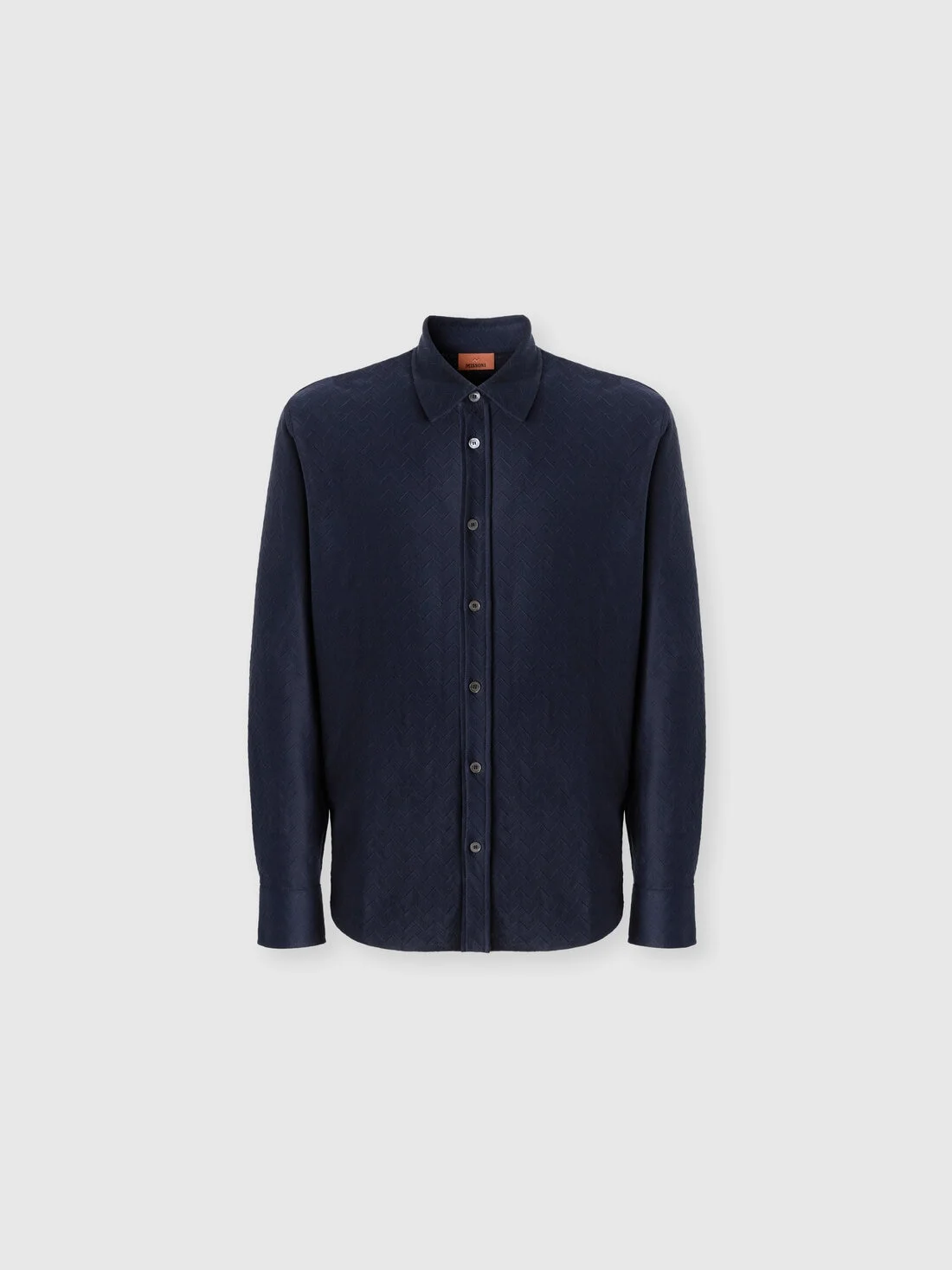 Cotton jacquard shirt with tone-on-tone zigzag pattern