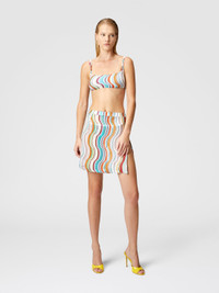 As if to recall the twilight colors of the summer sky, the cover-up miniskirt features a wave pattern, consistent with Missoni's vibrant DNA. Enriched with lame reflections and sophisticated raschel workmanship, the fabric captures and reflects light with elegance, and is embellished with a sensual side slit. MORE DETAILS - Miniskirt cover-up - Wave pattern - Raschel lame processing - Side slit Composition: EXTERNAL:95%Rayon, 5%Metal Fiber Care instructions: Ironing maximum temperature 110°C - without steam ; Dry cleaning in tetrachloroethene ; Do not tumble dry ; Do not wash ; Do not bleach Made in: Italy Product ID MC25SH01BR0100SM9L0