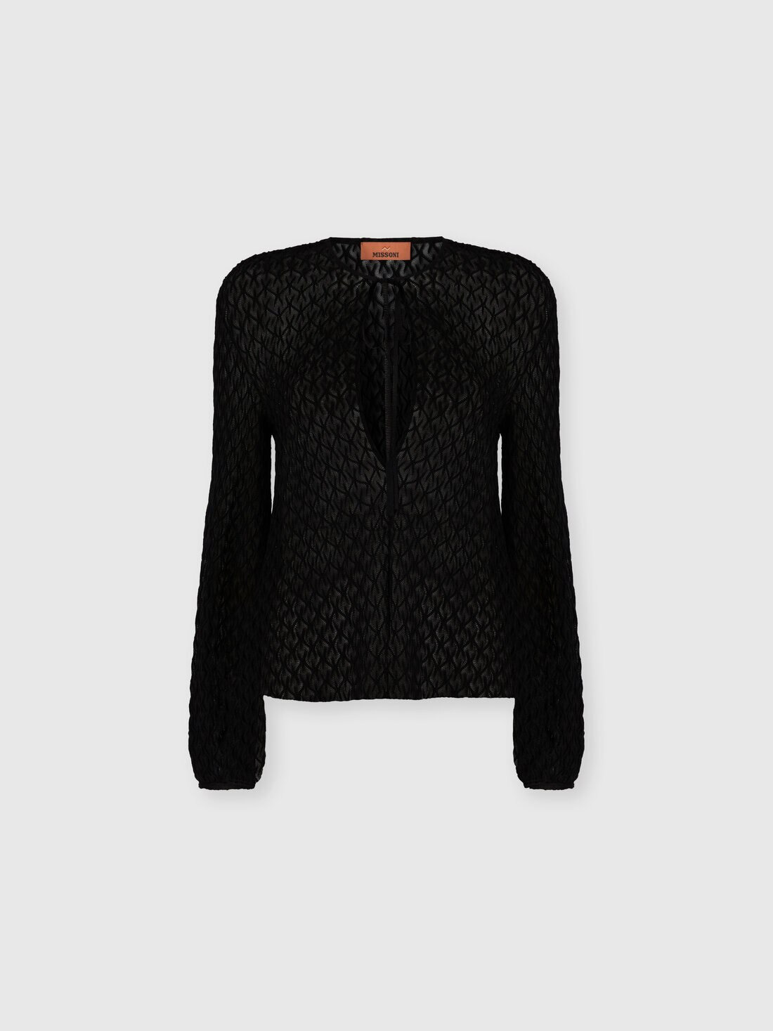 A refined women’s blouse with teardrop neckline and sophisticated raschel lace in ribbed pattern. Made in solid color wool blend, the piece combines elegance and structure, for a sophisticated and modern look perfect for special occasions. MORE DETAILS - Crew neck blouse - Raschel knit in raised lace pattern - Solid color - Wool blend Composition: EXTERNAL:54%Wool, 46%Rayon Care instructions: Ironing maximum temperature 110°C - without steam ; Dry cleaning in tetrachloroethene - mild process ; Do not tumble dry ; Dry flat ; Do not wash ; Do not bleach Made in: Italy Product ID DS25WJ0KBR012J93911