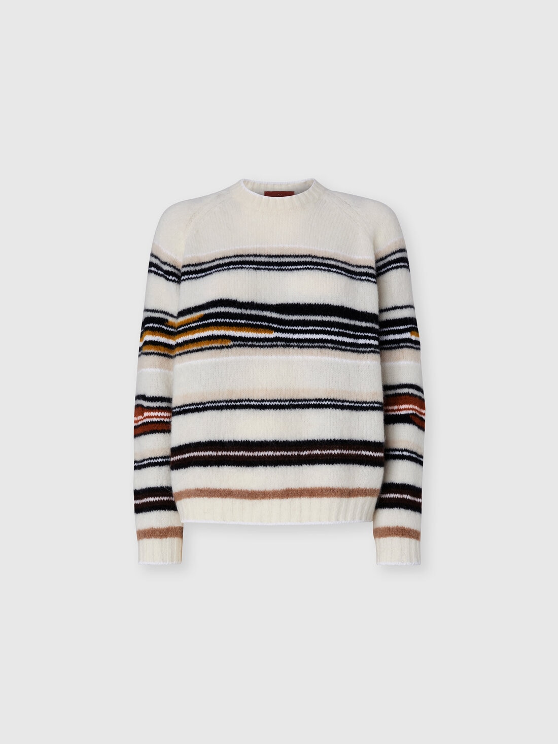 Oversized long-sleeve women’s crew-neck sweater, made from a precious blend of wool, mohair, and alpaca. The striped intarsia enhances the softness and lightness of the yarns, an expression of Missoni’s constant pursuit of quality and refinement in materials—always a distinctive signature of the brand. MORE DETAILS - Oversized crew neck long-sleeve sweater - Striped intarsia - Wool, mohair, and alpaca blend Composition: EXTERNAL:43%Polyester, 19%Polyamide, 16%Wool, 14%Mohair goat, 4%Alpaca Fibra, 2%Cotton, 2%Elastane Care instructions: Hand wash ; Ironing maximum temperature 110°C - without steam ; Dry cleaning in tetrachloroethene ; Dry flat ; Dry inside out ; Do not tumble dry ; Iron with a cloth between ; Use neutral detergent ; Do not bleach Made in: Italy Product ID DS25WN0WBK01C5SM9SW