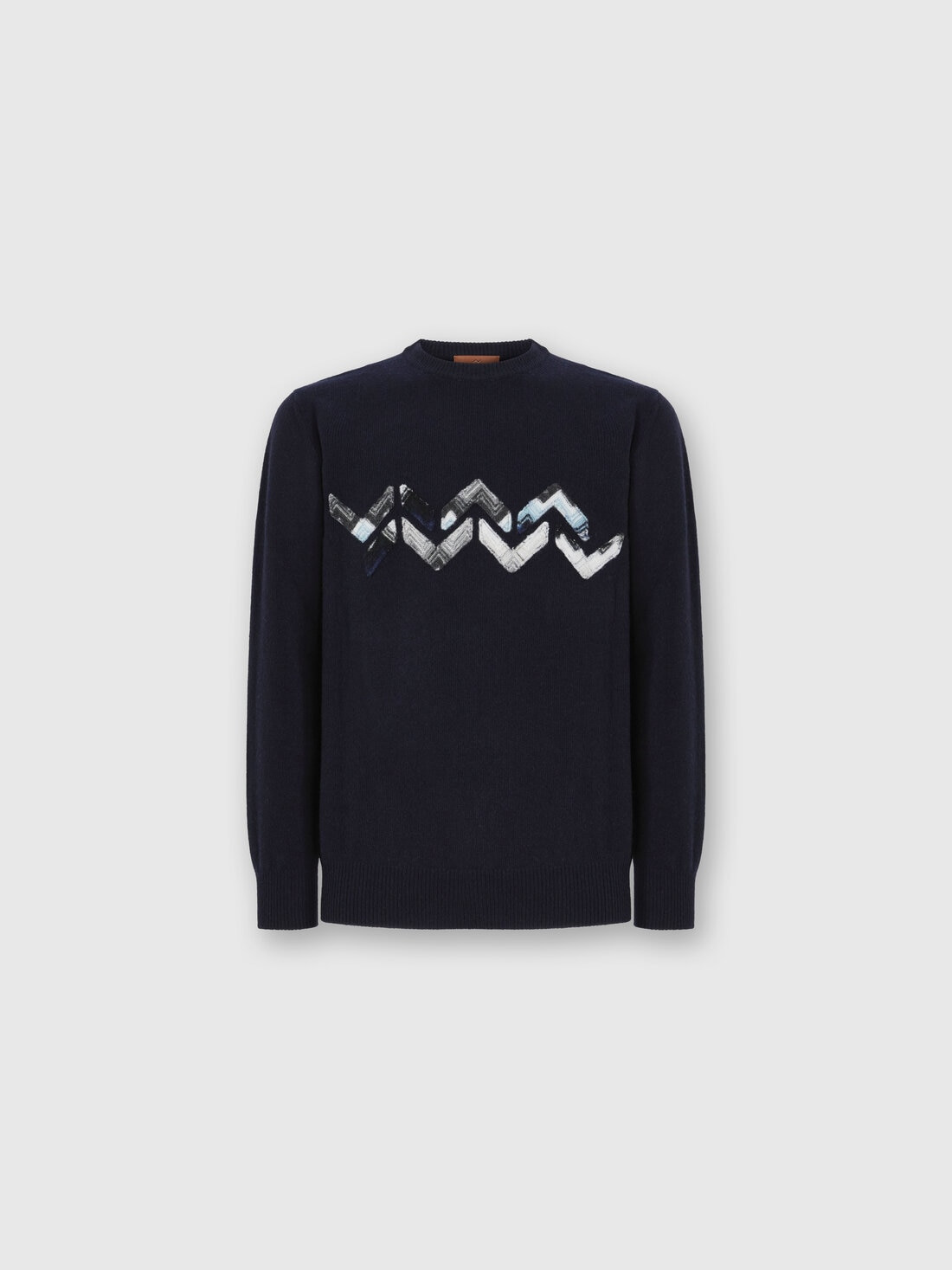 Crew Neck Sweater with Zigzag Detail