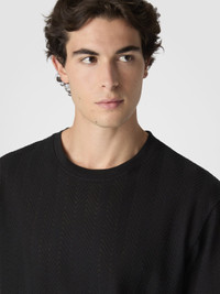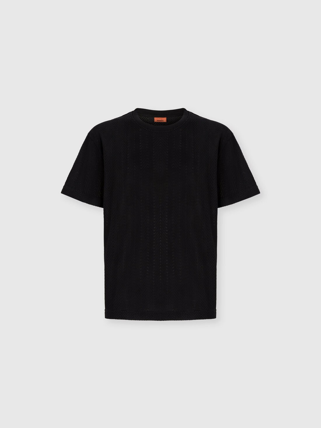 A refined cotton and viscose knit for this men's short-sleeve crew-neck T-shirt. The raschel workmanship with tone-on-tone zigzag defines the relaxed-fit model. MORE DETAILS - Crew-neck T-shirt short sleeve - Cotton and viscose knit - Tone-on-tone raschel pattern Composition: EXTERNAL:74%Cotton, 26%Rayon; INSERTS:100%Cotton Care instructions: Ironing maximum temperature 110°C - without steam ; Hand wash ; Dry cleaning in tetrachloroethene - mild process ; Do not tumble dry ; Dry flat ; COOL HAND WASH ; Do not bleach Made in: Italy Product ID US25WL02BR012293911