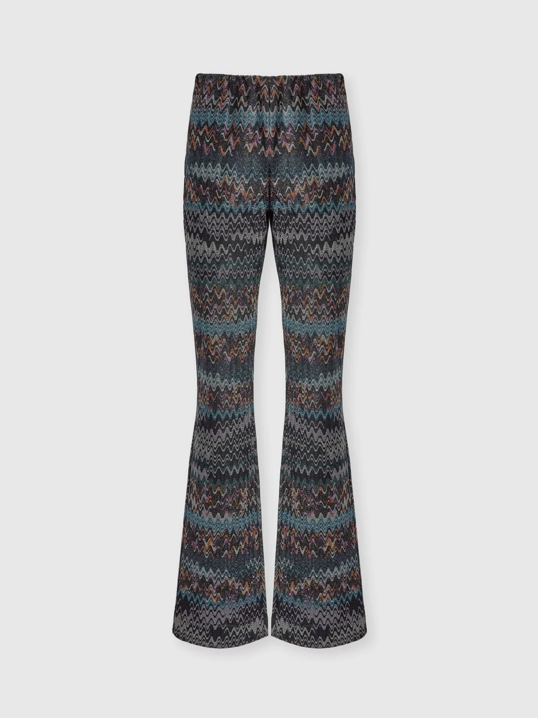 The slender silhouette meets the shimmering iridescence of the fabric in these women’s flare trousers in lame viscose, enhanced by a raschel knit in a flame chevron pattern. A piece with a sophisticated allure that highlights movement with natural elegance. MORE DETAILS - Women’s flare trousers - Raschel knit with flame chevron pattern - Viscose and lame blend Composition: EXTERNAL:83%Rayon, 17%Metal Fiber; INTERNAL REINFORCEMENT:100%Polyester Care instructions: Dry cleaning in tetrachloroethene - mild process ; Wash max 30°C - Very mild process ; Dry flat ; Steam iron only ; Do not tumble dry ; Do not iron ; Do not bleach Made in: Italy Product ID DS25WI14BR014AS72O0