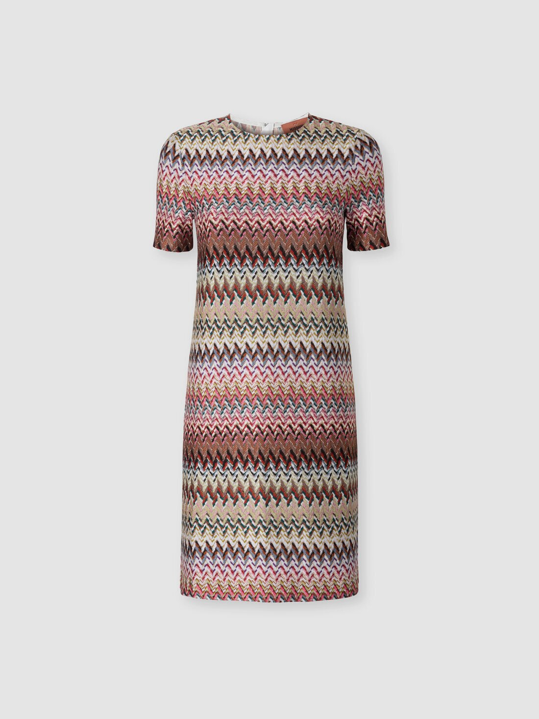 This women's viscose blend dress with lame filaments stands out for its raschel weave with a zigzag pattern, an icon of Missoni style. The half-sleeved, straight-cut design is a classic reinterpreted with a distinctive touch, combining elegance and personality for any occasion. MORE DETAILS - Women's short dress - Half sleeves - Raschel knit - Viscose and wool blend - Lame filaments - Zigzag pattern Composition: EXTERNAL:89%Rayon, 6%Metal Fiber, 5%Polyamide; INTERNAL:100%Polyamide Care instructions: Dry cleaning in tetrachloroethene - mild process ; Ironing maximum temperature 110°C - without steam ; Do not tumble dry ; Dry flat ; Do not wash ; Do not bleach Made in: Italy Product ID DS25WG1WBR012LSM9QY
