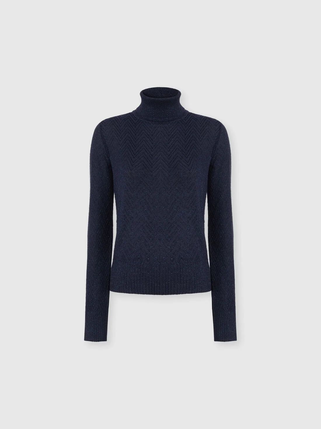 High-neck sweater with chevron pattern and lamé filaments