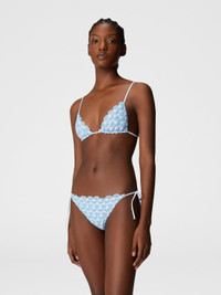 A lace bikini by Missoni, embellished with lame inserts that enhance its luminosity and elegance. The bottom, with adjustable ties, offers a customizable fit, while the triangle top with adjustable neck ties ensures comfort and support. A perfect model for those looking for a mix of refinement and style, ideal for a distinctive and sophisticated beach look. MORE DETAILS - Bikini - Adjustable triangle - Adjustable briefs - Lace - Lame inserts Composition: EXTERNAL:90%Rayon, 10%Metal Fiber; LINING : 80%Polyamide, 20%Elastane Care instructions: Hand wash ; Do not tumble dry ; Do not dry clean ; Do not iron ; Do not bleach Made in: Italy Product ID MS25SP0XBR012TS72L5