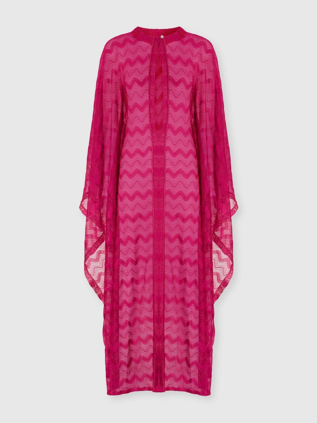 The Missoni Lame Viscose Long Cover Up Caftan captures the essence of timeless elegance with a touch of modern sensuality. The refined chevron pattern, enriched by lame reflections, envelops the body in a sophisticated luminosity, while the cut-out detail adds a note of discreet seduction. The long flared sleeves complete the design with a smooth and light movement. MORE DETAILS - Long cover-up kaftan - Viscose lame - Zigzag pattern - Sleeves Composition: EXTERNAL:91%Rayon, 9%Metal Fiber Care instructions: Ironing maximum temperature 110°C - without steam ; Dry cleaning in tetrachloroethene ; Do not tumble dry ; Do not wash ; Do not bleach Made in: Italy Product ID MS25SQ0ABR00ZXS5074