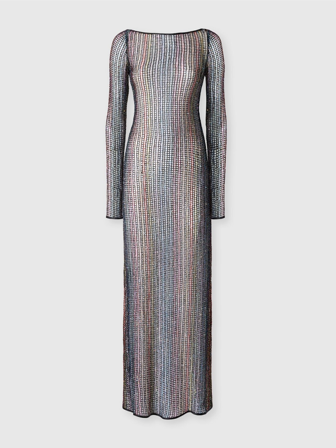 A piece that plays with transparency: the long cover-up in mesh wraps the body with a seductive see-through effect. The open back, long sleeves, and sequins add a sophisticated and glamorous touch. MORE DETAILS - Women's long-sleeve cover-up - Mesh design with lame - Open back - Embellished with sequins Composition: EXTERNAL:61%Rayon, 23%Metal Fiber, 16%Polyamide Care instructions: Ironing maximum temperature 110°C - without steam ; Dry cleaning in tetrachloroethene ; Do not tumble dry ; Do not wash ; Do not bleach Made in: Italy Product ID MS25SQ14BV00HDS91PF