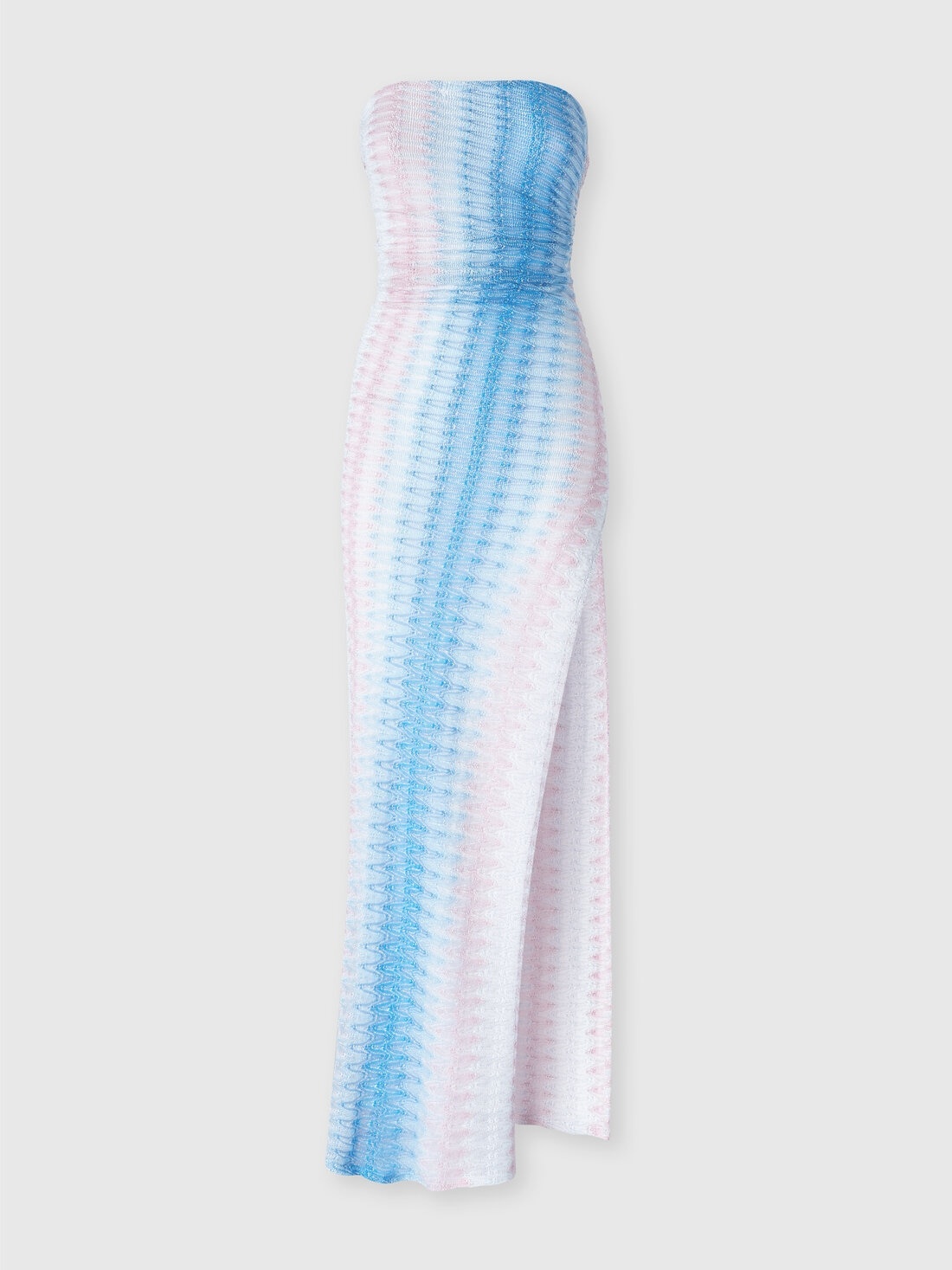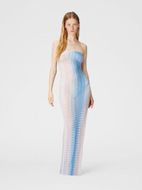 Elegance and seduction merge in this strapless cover-up, made from degrade lace with a sensual play of transparencies. The side gathering and skirt slit add movement and refinement, while the viscose and lame enhance the fabric's luminosity. MORE DETAILS - Women's long cover-up - Degrade lace workmanship - Lame and viscose fabric - Straight neckline without straps - Sensual transparency - Side detail with ties Composition: EXTERNAL:93%Rayon, 7%Metal Fiber Care instructions: Ironing maximum temperature 110°C - without steam ; Dry cleaning in tetrachloroethene ; Do not tumble dry ; Do not wash ; Do not bleach Made in: Italy Product ID MC25SQ07BR0131S72L3