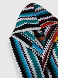 Curt, the new hooded bathrobe, boldly declares its allegiance to the Missoni universe with an all-over zigzag pattern. The multicoloured pattern that covers the model creates a rhythm endowed with a very recognisable sense of style, as is typical of MissoniHome. MORE DETAILS - Long cotton terry hooded bathrobe - Multicoloured chevron pattern - Waist belt - Patch pockets Composition: EXTERNAL:100%Cotton Care instructions: Ironing maximum temperature 150°C; Do not dry clean; Tumble drying at lower temperature; Wash max 40°C; Do not bleach Made in: Portugal Product ID 1C3AC99736100