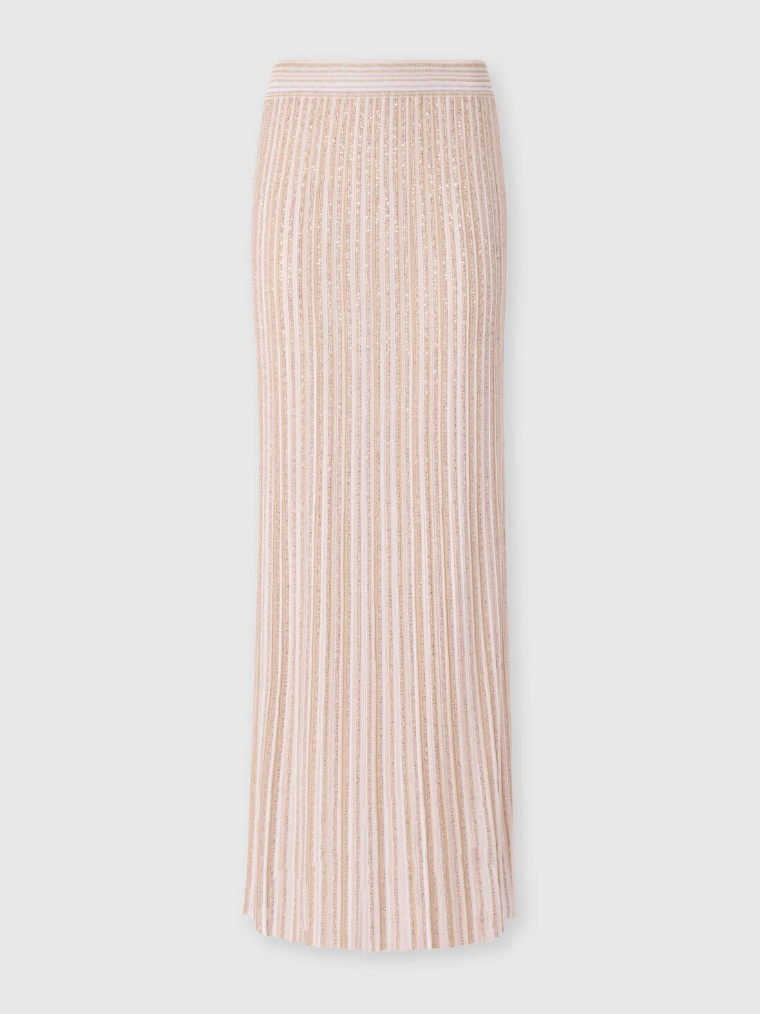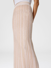 With an elegant and sophisticated spirit, this women’s long skirt, made of striped knit with lame threads, features a fluid silhouette that enhances its refinement. The combination of clean lines and luminous details creates a perfect balance between classicism and modernity, making it ideal for special occasions that require style and class. MORE DETAILS - Women's long skirt - Elasticated waistband - Striped knit - Viscose blend with lame yarns Composition: EXTERNAL:74%Rayon, 20%Polyamide, 5%Metal Fiber, 1%Elastane; LINING : 88%Polyester, 12%Elastane Care instructions: Ironing maximum temperature 110°C - without steam ; Dry cleaning in tetrachloroethene - mild process ; Wash in net bag ; Do not tumble dry ; Dry flat ; Iron inside out ; Dry inside out ; Do not wash ; Do not bleach Made in: Italy Product ID DS25WH0MBK01CLS30FN