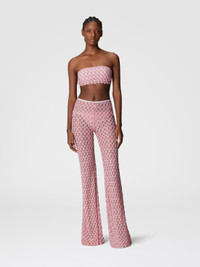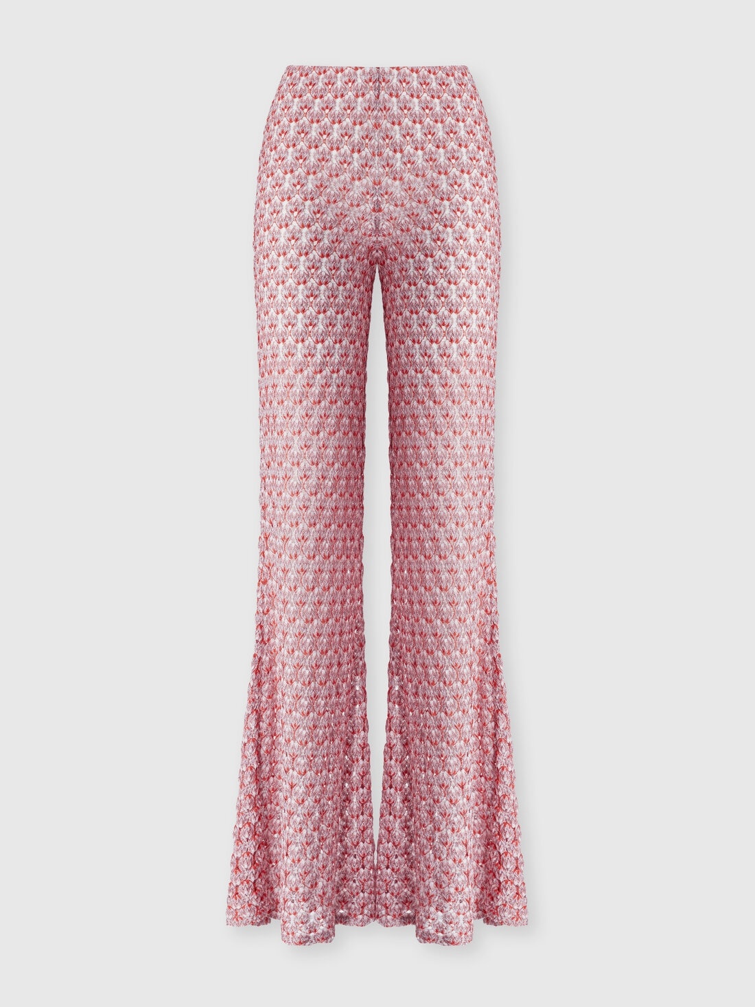A retro-chic piece with an elephant leg design that flatters the silhouette. Made from viscose and lame lace, it combines delicacy and originality for a sophisticated and feminine look. MORE DETAILS - Women's low-rise pants - Flared design - Viscose and lame lace workmanship Composition: EXTERNAL:90%Rayon, 10%Metal Fiber Care instructions: Ironing maximum temperature 110°C - without steam ; Dry cleaning in tetrachloroethene ; Do not tumble dry ; Do not wash ; Do not bleach Made in: Italy Product ID MC25SI00BR012TS416Y