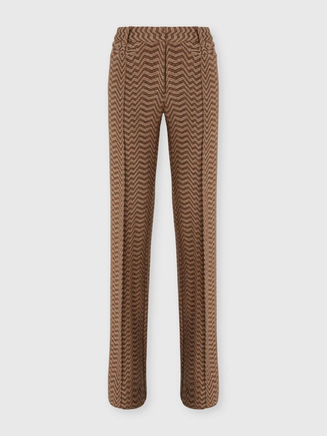 Tailored trousers with a masculine edge for women, made on a Caperdoni loom featuring a bold, irregular chevron with strong graphic personality. The cotton-wool blend fabric adds structure and comfort, highlighting the precision of the lines and construction quality. A piece that reinterprets classic tailoring with a distinctive and modern touch. MORE DETAILS - Tailored menswear trousers for women - Woven Caperdoni framework - Irregular chevron pattern - Cotton and wool blend Composition: EXTERNAL:77%Wool, 23%Cotton; INTERNAL REINFORCEMENT:100%Polyamide Care instructions: Hand wash ; Ironing maximum temperature 110°C - without steam ; Do not tumble dry ; Dry flat ; COOL HAND WASH ; do not soak ; Do not dry clean ; Do not bleach Made in: Italy Product ID DS25WI15BC005RS01J5