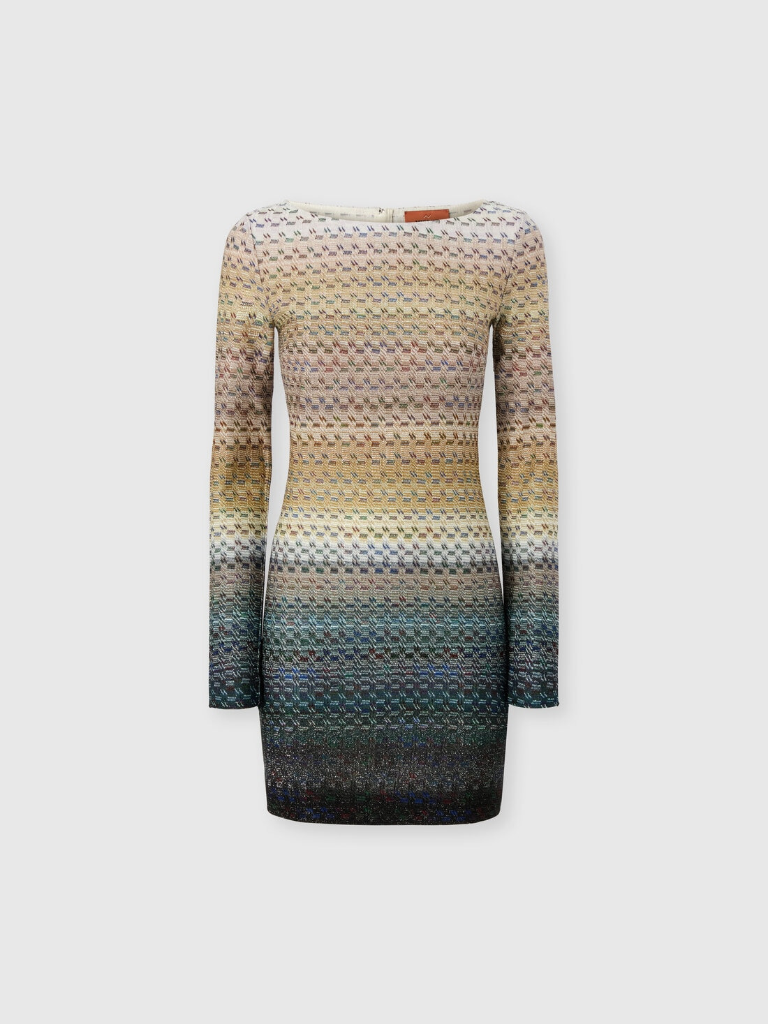 Long-sleeve women’s mini dress with bateau neckline, crafted in a precious offset raschel knit. The viscose blend yarn, enriched with lame threads, gives the surface a discreet luminosity. The knit construction enhances the silhouette with soft yet defined lines, creating a refined and contemporary look designed for evening. MORE DETAILS - Women's boatneck mini dress - Offset raschel knit - Viscose and lame filament blend Composition: EXTERNAL:88%Rayon, 12%Metal Fiber; INTERNAL REINFORCEMENT:100%Polyamide Care instructions: Ironing maximum temperature 110°C - without steam ; Hand wash ; Dry cleaning in tetrachloroethene - mild process ; Do not tumble dry ; Do not bleach Made in: Italy Product ID DS25WG44BR0144S72O4