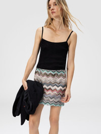 With a bold and contemporary character, this short women’s mini skirt in pure viscose is defined by raschel workmanship with a snake motif that recalls Missoni’s iconic zigzag. The dynamic design and unique texture give the garment a distinctive touch, perfect for a bold and sophisticated look. MORE DETAILS - Women's short miniskirt - Raschel knit snake pattern - 100% viscose Composition: EXTERNAL:100%Rayon; INTERNAL REINFORCEMENT:100%Polyester Care instructions: Dry cleaning in tetrachloroethene - mild process ; Wash max 30°C ; Dry flat ; Steam iron only ; Do not tumble dry ; Do not iron ; Do not bleach Made in: Italy Product ID DS25WH0HBR012GSM9QW