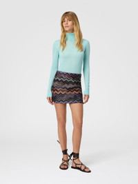 With a bold and contemporary character, this short women’s mini skirt in pure viscose is defined by raschel workmanship with a snake motif that recalls Missoni’s iconic zigzag. The dynamic design and unique texture give the garment a distinctive touch, perfect for a bold and sophisticated look. MORE DETAILS - Women's short miniskirt - Raschel knit snake pattern - 100% viscose Composition: EXTERNAL:100%Rayon; INTERNAL REINFORCEMENT:100%Polyester Care instructions: Dry cleaning in tetrachloroethene - mild process ; Wash max 30°C ; Dry flat ; Steam iron only ; Do not tumble dry ; Do not iron ; Do not bleach Made in: Italy Product ID DS25WH0HBR012GSM9U4