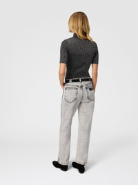 Perfect as a foundation for seasonal looks, this short-sleeve mock-neck women’s sweater in viscose and wool blend features refined vanise workmanship enriched with fine lame threads. The result is a versatile and luminous garment, ideal for adding a touch of discreet elegance to any outfit. MORE DETAILS - Short-sleeve mock neck sweater - Vanise knit - Viscose blend with lame threads Composition: EXTERNAL:88%Rayon, 12%Metal Fiber Care instructions: Dry cleaning in tetrachloroethene - mild process ; Ironing maximum temperature 110°C - without steam ; Do not tumble dry ; Dry flat ; Iron inside out ; Dry inside out ; Iron with a cloth between ; Do not wash ; Do not bleach Made in: Romania Product ID DS25WN13BK01BYL905D
