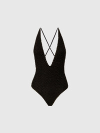 MORE DETAILS - Women's one-piece swimsuit - Deep V-neckline - Crossed straps at the back - Raschel knit - Spiderweb lace pattern - Viscose lame blend Composition: EXTERNAL:83%Rayon, 17%Metal Fiber; LINING : 90%Polyamide, 10%Elastane Care instructions: Hand wash ; Do not tumble dry ; Do not dry clean ; Do not iron ; Cool Hand Wash ; Do not bleach Made in: Italy Product ID MC22SP03BR014RS91RE