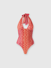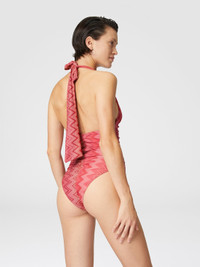 Lame one-piece swimsuit with a vibrant zigzag pattern, adding a touch of glamour. The back neckline fastened behind the neck guarantees elegance and comfort. MORE DETAILS - Lame one-piece swimsuit - Zigzag pattern - Stretch fabric Composition: EXTERNAL:42%Metal Fiber, 42%Polyamide, 16%Elastane; LINING : 80%Polyamide, 20%Elastane Care instructions: Hand wash ; Do not tumble dry ; Do not dry clean ; Do not iron ; Do not bleach Made in: Italy Product ID MS25SP0CBJ00LIS416I
