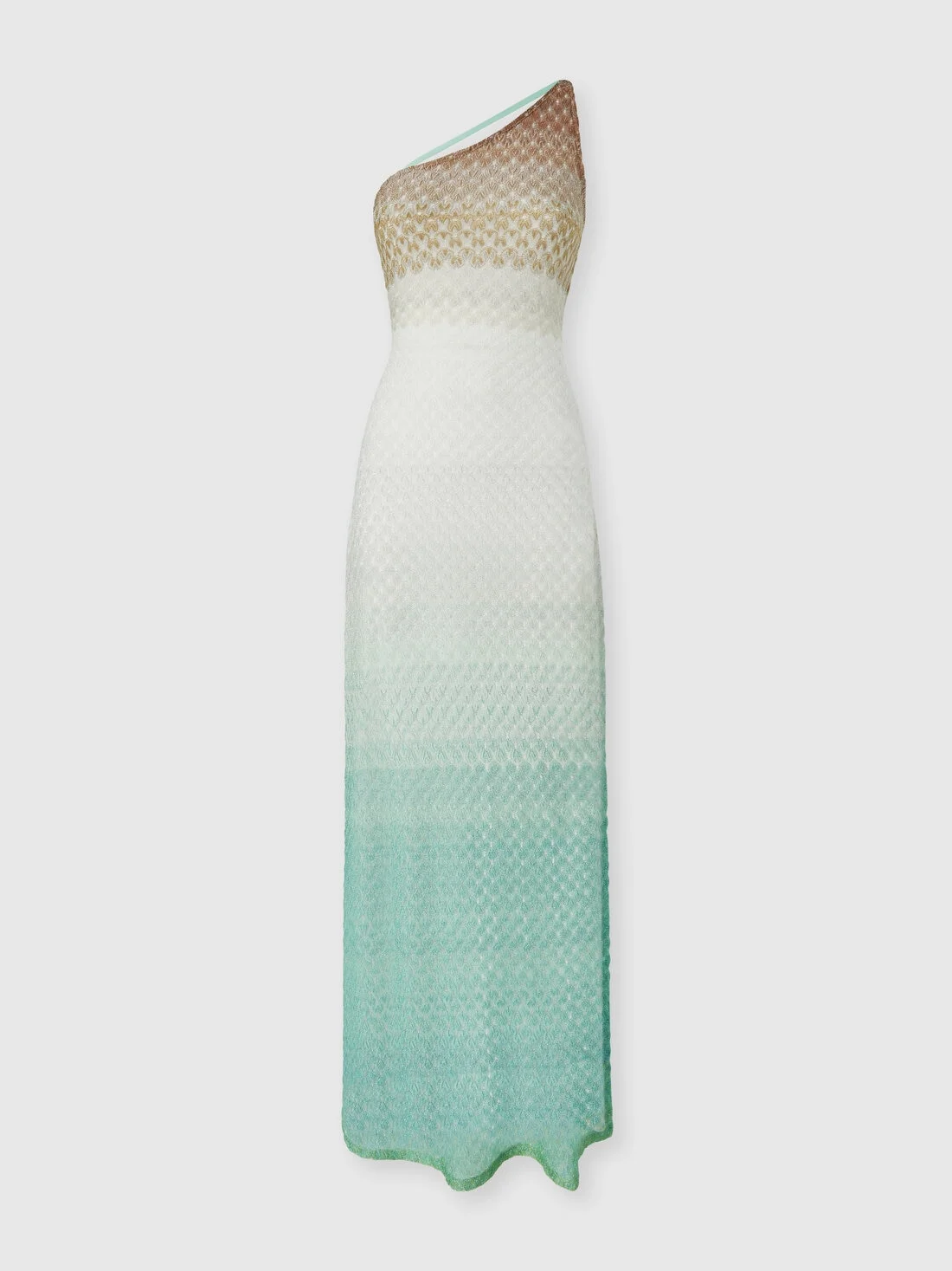 One-shoulder dress in lamé viscose with dégradé spiderweb motif