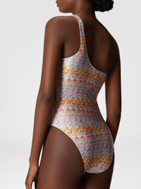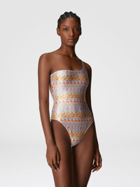 Contemporary design for this one-shoulder one-piece swimsuit, made from printed technical fabric with the iconic zigzag pattern. A perfect choice for a modern, distinctive look that celebrates the female silhouette. MORE DETAILS - Women's one-piece swimsuit - Monospalla design - Iconic zig zag pattern - Stretch technical fabric workmanship Composition: EXTERNAL:78%Polyamide, 22%Elastane; LINING : 80%Polyamide, 20%Elastane Care instructions: Hand wash ; Do not tumble dry ; Do not dry clean ; Do not iron ; Do not bleach Made in: Italy Product ID MC22SP04BJ00ODSM9R0