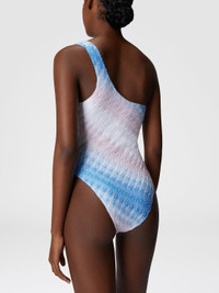 A refined one-shoulder one-piece swimsuit made from viscose and lame. The degrade lacework adds depth and movement, while the design enhances timeless elegance. MORE DETAILS - Women's one-piece swimsuit - Monospalla design - Degrade lace workmanship - Viscose and lame fabric Composition: EXTERNAL:93%Rayon, 7%Metal Fiber; LINING : 80%Polyamide, 20%Elastane Care instructions: Hand wash ; Do not tumble dry ; Do not dry clean ; Do not iron ; Do not bleach Made in: Italy Product ID MC22SP04BR0131S72L3