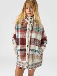 Oversized buttoned cardigan with check pattern