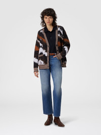 An expression of Missoni’s craftsmanship and expertise, this oversized buttoned cardigan for women is made of jacquard knit in alpaca blend, featuring a tiger pattern. The refined materials and artisanal workmanship give the garment a soft and warm texture, while the animalier motif adds a bold and original touch. MORE DETAILS - Oversized buttoned cardigan - Tiger pattern jacquard knit - Alpaca blend Composition: EXTERNAL:49%Polyamide, 32%Alpaca Fibra, 14%Wool, 5%Cotton Care instructions: Ironing maximum temperature 110°C - without steam ; Hand wash ; Dry cleaning in tetrachloroethene - mild process ; Wash inside out ; Do not tumble dry ; Dry flat ; Iron with a cloth between ; Use neutral detergent ; Do not bleach Made in: Italy Product ID DS25WM0XBK01C2SM9SZ