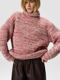 A garment with strong character that redefines traditional knitwear with a modern, authentic aesthetic. This oversized women’s turtleneck sweater is made from flame rib knit in pure wool, chosen for its irregular texture full of movement. The loose fit enhances the sense of softness and comfort, resulting in an essential yet personality-rich design. MORE DETAILS - Women's high neck sweater - Flamed English rib knit - 100% wool Composition: EXTERNAL:100%Wool Care instructions: Hand wash ; Ironing maximum temperature 110°C - without steam ; Dry cleaning in tetrachloroethene ; Wash in net bag ; Do not tumble dry ; Dry flat ; Do not bleach Made in: Italy Product ID DS25WN1UBK01ESSM9WM