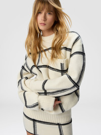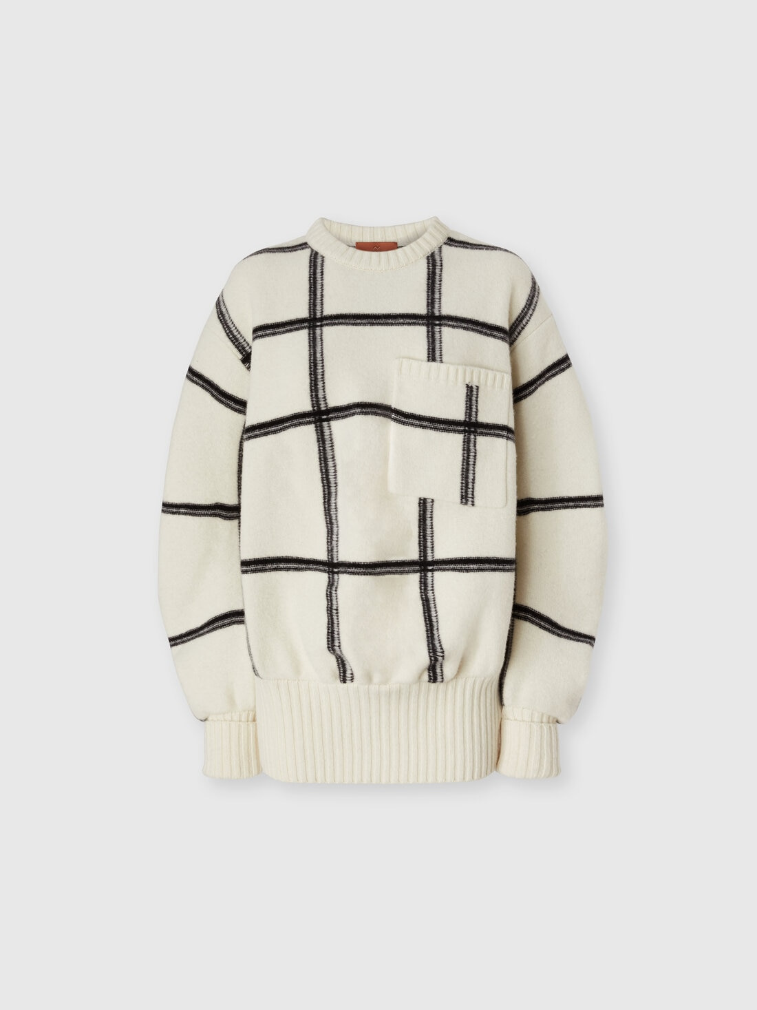 With a relaxed, assertive attitude, this oversized women’s crewneck knit with patch pocket reinterprets the classic check motif in a modern key. Crafted in jacquard knit from pure wool, it stands out for its rich texture and precise graphic detail. The roomy construction enhances comfort without sacrificing style, blending tradition and modernity with natural elegance. MORE DETAILS - Over crewneck sweater with pocket - Jacquard checked knit - 100% wool Composition: EXTERNAL:100%Wool Care instructions: Hand wash ; Ironing maximum temperature 110°C - without steam ; Dry cleaning in tetrachloroethene ; Do not tumble dry ; Dry flat ; Do not bleach Made in: Italy Product ID DS25WN1QBK01EOS01JF