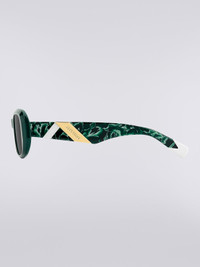 Triangle-shaped decorations on temples combine texture and solid inserts with metal details for a three-dimensional effect. MORE DETAILS - Solid tint polyester lens - Acetate front - Acetate temple - Lens width 52mm - Bridge size 20mm - Temple length 140mm Composition: EXTERNAL:100%Acetate; INSERTS:100%Acetate Made in: China Product ID LS25S003BV008BS6140