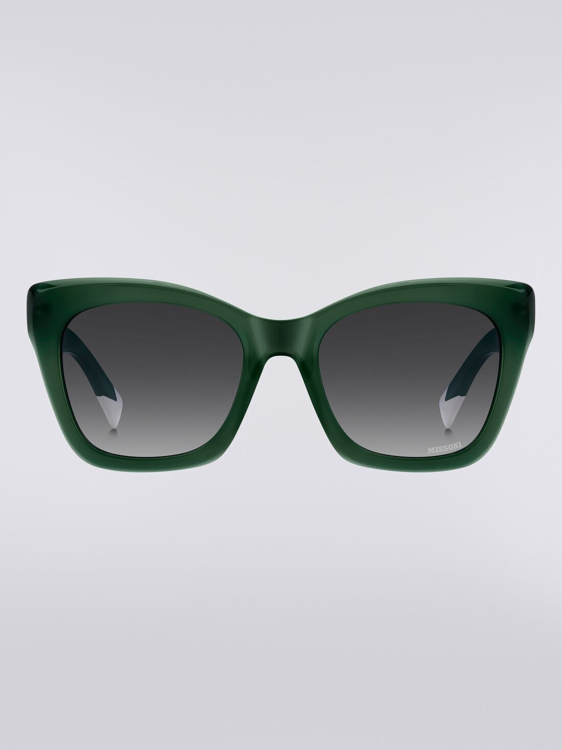 Triangle-shaped decorations on temples combine texture and solid inserts with metal details for a three-dimensional effect. MORE DETAILS - Gradient polyester lens - Acetate front - Acetate temple - Lens width 53mm - Bridge size 21mm - Temple length 140mm Composition: EXTERNAL:100%Acetate; INSERTS:100%Acetate Made in: China Product ID LS25S002BV008BS6140