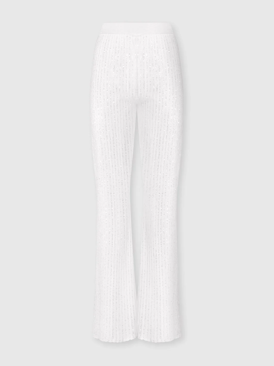Ribbed Viscose Lamé Straight Trousers with Sequins