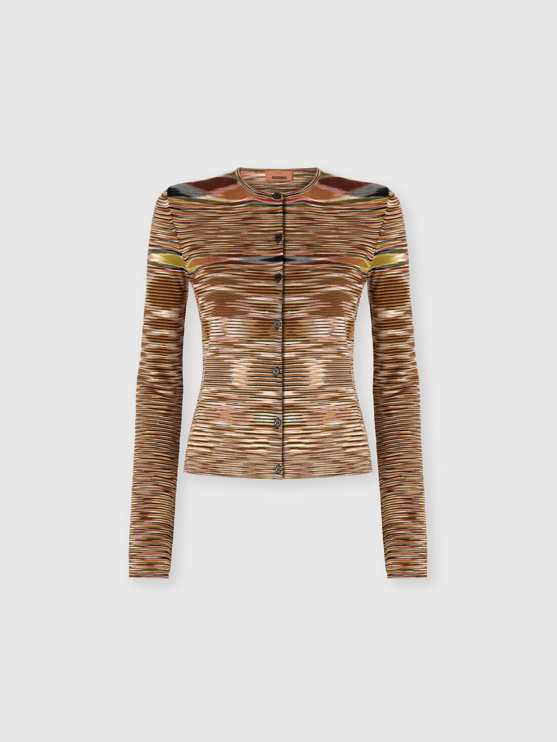 Short crew-neck buttoned cardigan for women, made of slubbed smooth wool blend knit. The compact design and unique knit texture give the garment a distinctive character, ideal for adding a touch of informal elegance to any outfit. MORE DETAILS - Short crew neck cardigan - Flame plain knit - Wool blend Composition: EXTERNAL:97%Wool, 2%Polyamide, 1%Elastane Care instructions: Hand wash ; Dry cleaning in tetrachloroethene - mild process ; Ironing maximum temperature 110°C - without steam ; Wash inside out ; COOL HAND WASH ; Dry flat ; Do not tumble dry ; Iron with a cloth between ; Do not bleach Made in: Romania Product ID DS25WM0JBK01CCFM13W