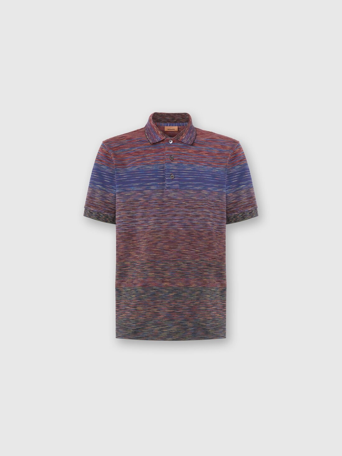 Short-sleeve men’s polo shirt, regular fit, made of shaded slub pique in 100% cotton. The characteristic play of gradients and fabric quality express Missoni’s understated elegance and refinement, perfect for a fresh, contemporary look. MORE DETAILS - Short-sleeve polo regular fit - Faded slub pique knit - 100% cotton Composition: EXTERNAL:100%Cotton Care instructions: Ironing maximum temperature 110°C - without steam ; Wash max 30°C - Very mild process ; Dry cleaning in tetrachloroethene ; Dry flat ; Do not tumble dry ; Do not bleach Made in: Romania Product ID US25W203BJ0014SM9R8