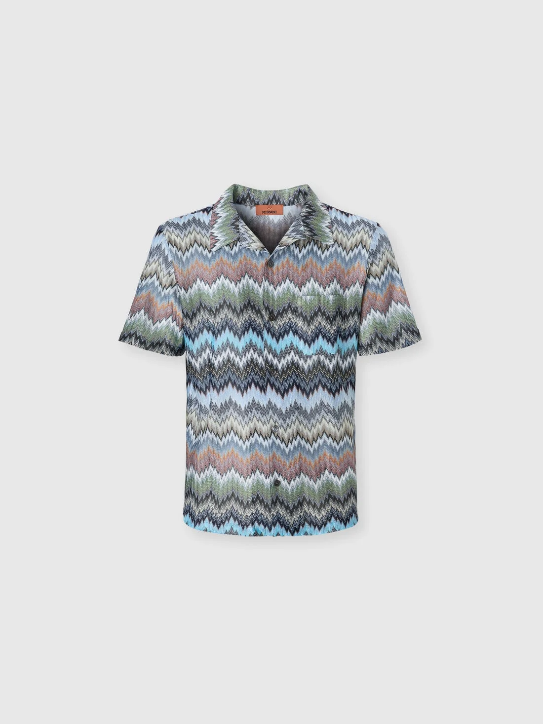The raschel workmanship enhances the chevron snake motif that animates this short-sleeved men’s viscose shirt, giving it depth and movement. A piece that reflects the balance between textile creativity and artisanal mastery, hallmarks of the maison. MORE DETAILS - Men’s short-sleeved shirt - Raschel chevron knit - Snake pattern - 100% viscose Composition: EXTERNAL:100%Rayon Care instructions: Ironing maximum temperature 110°C - without steam ; Dry cleaning in tetrachloroethene - mild process ; Do not tumble dry ; Do not wash ; Do not bleach Made in: Italy Product ID US26SJ03BR014TS91RM