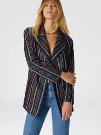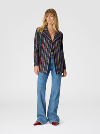 Single-Breasted Blazer with Herringbone Stripe Knit