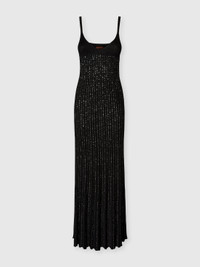 The elegance of this dress takes shape in a long sleeveless design crafted from viscose lame blend with sequins. The V-neckline and tone-on-tone ribbed workmanship enhance the silhouette, while the interplay of light and texture adds movement and refined luminosity to the fabric, turning the piece into a sophisticated interpretation of Missoni style. MORE DETAILS - Women's strapless long dress - Tone-on-tone ribbed knit - Viscose and lame blend with sequins Composition: EXTERNAL:69%Rayon, 19%Polyamide, 12%Metal Fiber; LINING : 82%Polyester, 18%Elastane Care instructions: Ironing maximum temperature 110°C - without steam ; Dry cleaning in tetrachloroethene - mild process ; Do not tumble dry ; Dry flat ; Do not wash ; Do not bleach Made in: Italy Product ID DS26SG0LBK01GHS91RX