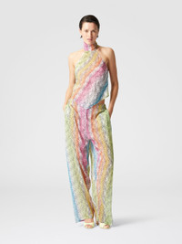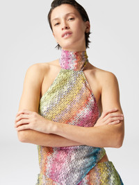 The sleeveless cotton and silk blend scarf top stands out for its high collar and the refined ribbon that is tied behind the neck, leaving the back elegantly uncovered. The print, enhanced by the lightness of the fabric, creates a harmonious and dynamic effect, while the enveloping design enhances the figure with sober sensuality. A garment that combines modernity and refinement, perfect for those looking for refined details and clean lines. MORE DETAILS - Sleeveless turtleneck top - Printed Cotton & Silk Blend - Backless Composition: EXTERNAL:78%Cotton, 22%Silk Care instructions: Ironing maximum temperature 110°C - without steam ; Dry cleaning in tetrachloroethene ; Do not tumble dry ; Do not wash ; Do not bleach Made in: Italy Product ID MS25SK06BW00UUSM9N2