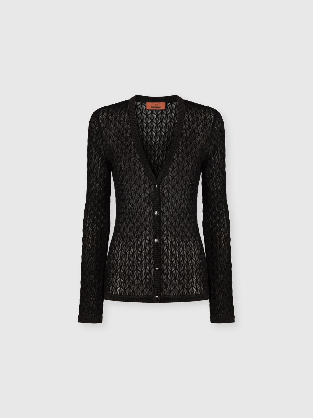 A timeless and sophisticated piece, this slim-fit V-neck buttoned cardigan for women is enriched by raschel lace in ribbed pattern. Made of wool and viscose blend in solid color, its clean design enhances its discreet elegance, making it ideal to complete any look with class. MORE DETAILS - Slim V-neck buttoned cardigan - Raschel knit in raised lace pattern - Solid color - Wool and viscose blend Composition: EXTERNAL:54%Wool, 46%Rayon Care instructions: Hand wash ; Dry cleaning in tetrachloroethene - mild process ; Do not tumble dry ; Dry flat ; Steam iron only ; Do not iron ; Do not bleach Made in: Italy Product ID DS25WM06BR012J93911