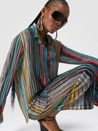The long trousers with flared hems acquire a contagious cheerfulness thanks to the striped pattern in flamed viscose knit. The bright flashes of the lame yarn give a bright touch to this garment perfect for special evenings. MORE DETAILS - Flared Pants - Ribbed viscose sweater - Lame flamed stripe pattern Composition: EXTERNAL:90%Rayon, 10%Metal Fiber Care instructions: Dry cleaning in tetrachloroethene ; Do not tumble dry ; Ironing maximum temperature 150°C ; Iron with a cloth between ; Use neutral detergent ; Wash max 40°C ; Do not bleach Made in: Italy Product ID DS24WI0BBK038MSM9EW