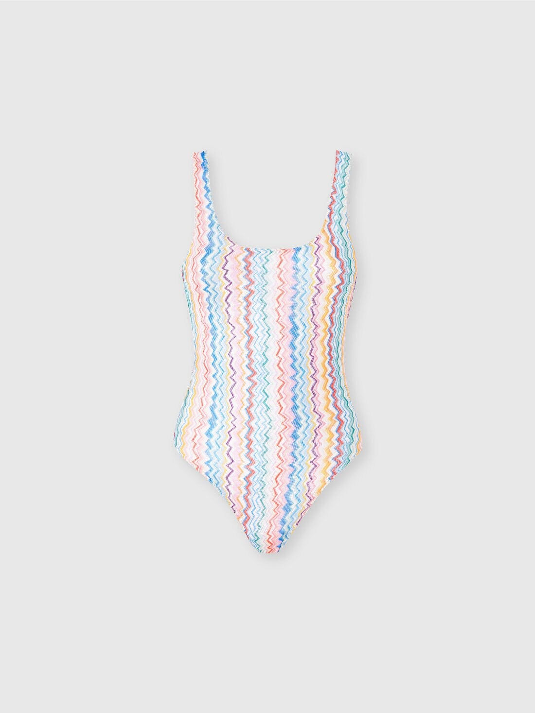 Iconic and captivating, this sporty one-piece swimsuit is made from printed Raschel fabric with Missoni’s unmistakable zigzag pattern. A piece that enhances femininity with a sporty yet glamorous touch. MORE DETAILS - Women's one-piece swimsuit - Sporty style design - Iconic zig zag pattern - Raschel printed workmanship Composition: EXTERNAL:100%Polyester; LINING : 80%Polyamide, 20%Elastane Care instructions: Hand wash ; Do not tumble dry ; Do not dry clean ; Do not iron ; Do not bleach Made in: Italy Product ID MC22SP05BR0130SM9QJ