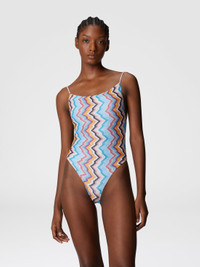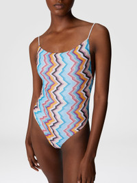 An iconic sporty one-piece swimsuit with thin straps that add a feminine touch. Made from Raschel with viscose and lame, it features the famous zigzag pattern for a look that captures attention on the beach or poolside. MORE DETAILS - Women's one-piece swimsuit - Sporty style design - Caperdoni lame and viscose workmanship - Iconic zig zag pattern Composition: EXTERNAL:89%Rayon, 11%Metal Fiber; LINING : 80%Polyamide, 20%Elastane Care instructions: Hand wash ; Do not tumble dry ; Do not dry clean ; Do not iron ; Do not bleach Made in: Italy Product ID MC25SP01BC005JS72LG